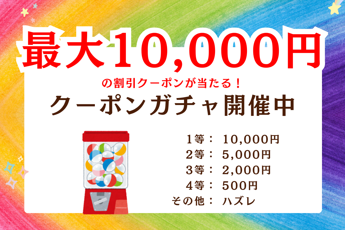 最大10,000円OFFクーポンが当たるクーポンガチャを開催しています🎁